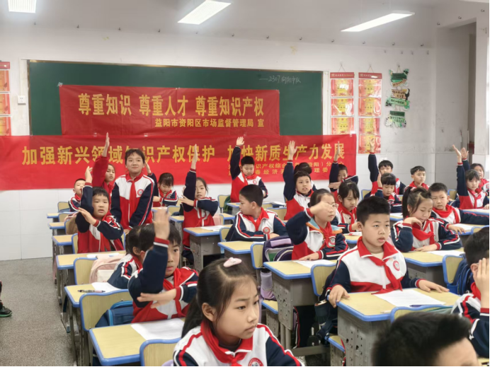 正值第26个全国知识产权宣传周,为普及知识产权知识,培养青少年尊重知识、崇尚创新的意识,4月22日,资阳区市场监督管理局走进益阳市人民路小学,开展了一场别开生面的“知识产权进校园”主题宣传活动。活动通过趣味知识竞答、互动讲解等形式,在孩子们心中播下了尊重创造、保护创新的种子。