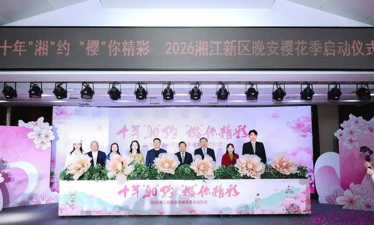 3月22日上午,2026湘江新区晚安樱花季启动仪式在晚安家居文化园启幕。