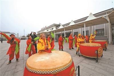蓟州北站广场, 欢迎游客的民俗表演 摄影/本报记者 付丁